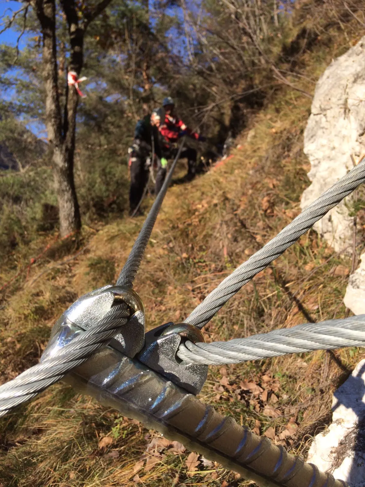 Equipaggiamento obbligatorio: casco, imbrago, set da ferrata con dissipatore e guanti. Indispensabili scarponcini da montagna con buona aderenza.