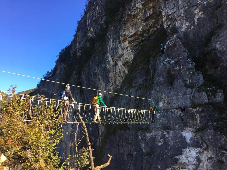 Oggi, oltre ai percorsi classici, si possono affrontare passaggi spettacolari come scale sospese, funi, traversate esposte e il ponte tibetano, che regala adrenalina pura sospesi nel vuoto. Con il tempo sono stati aggiunti itinerari sempre più vari e impegnativi, segnalati anche in nero per indicarne la difficoltà elevata.