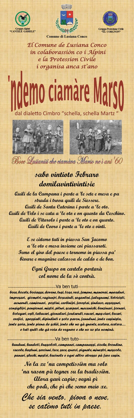 CIAMAR MARSO. Dalle Contrade con ritrovo in Piazza, il tradizionale “Ciamar Marso”, evento che celebra il risveglio della natura e incoraggia l’arrivo della primavera