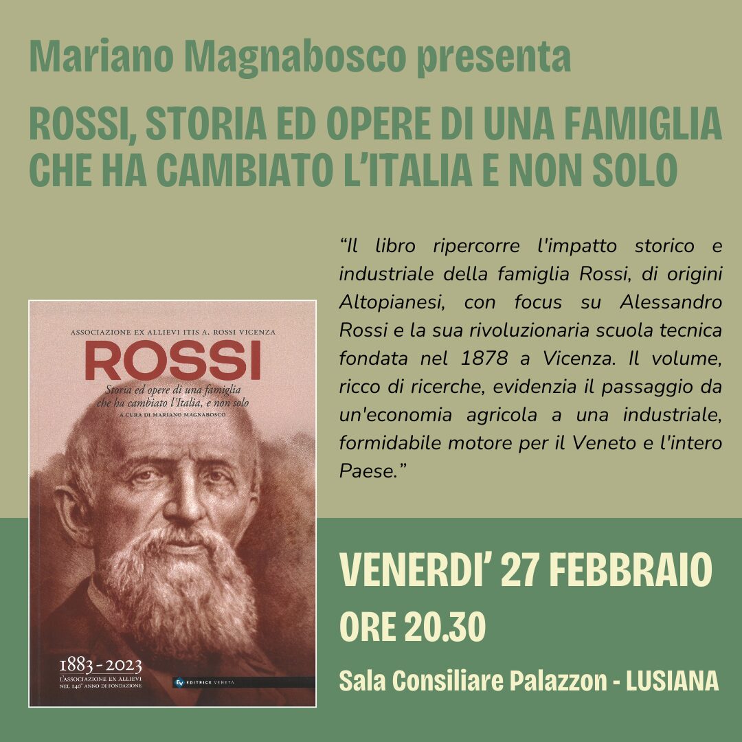 UN AUTORE TIRA L’ALTRO. Mariano Magnabosco presenta “Rossi, storia ed opere di una famiglia che ha cambiato l’Italia e non solo”