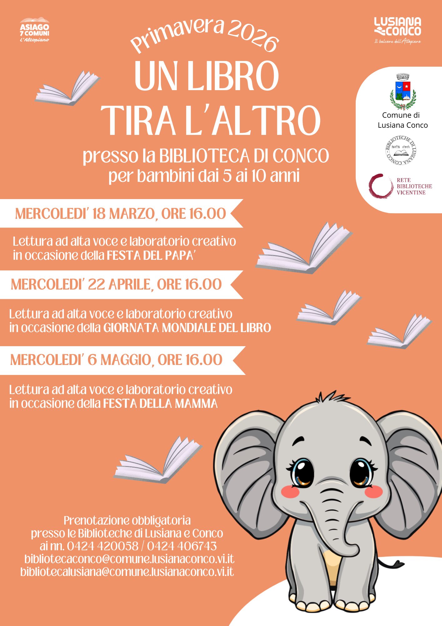 FESTA DEL PAPA’. Lettura ad alta voce e laboratorio creativo, per bambini dai 5 ai 10 anni. Prenotazione obbligatoria presso le Biblioteche di Lusiana e Conco ai nn. 0424 420058 / 0424 406743, bibliotecaconco@comune.lusianaconco.vi.it / bibliotecalusiana@comune.lusianaconco.vi.it