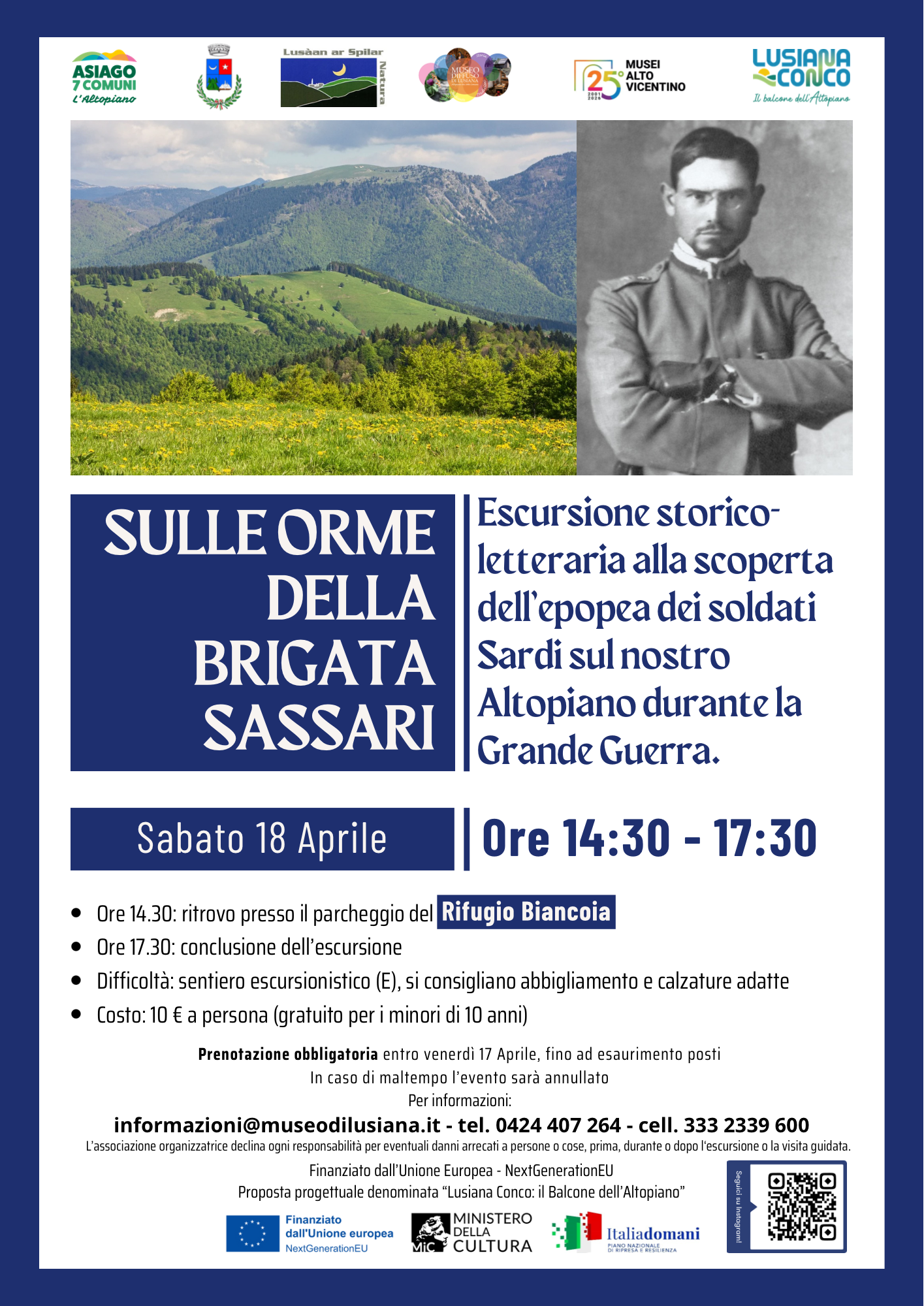 SULLE ORME DELLA BRIGATA SASSARI. Escursione storica-letteraria, a cura del Museo Diffuso di Lusiana. Costo € 10 (gratuito per i minori di 10 anni).