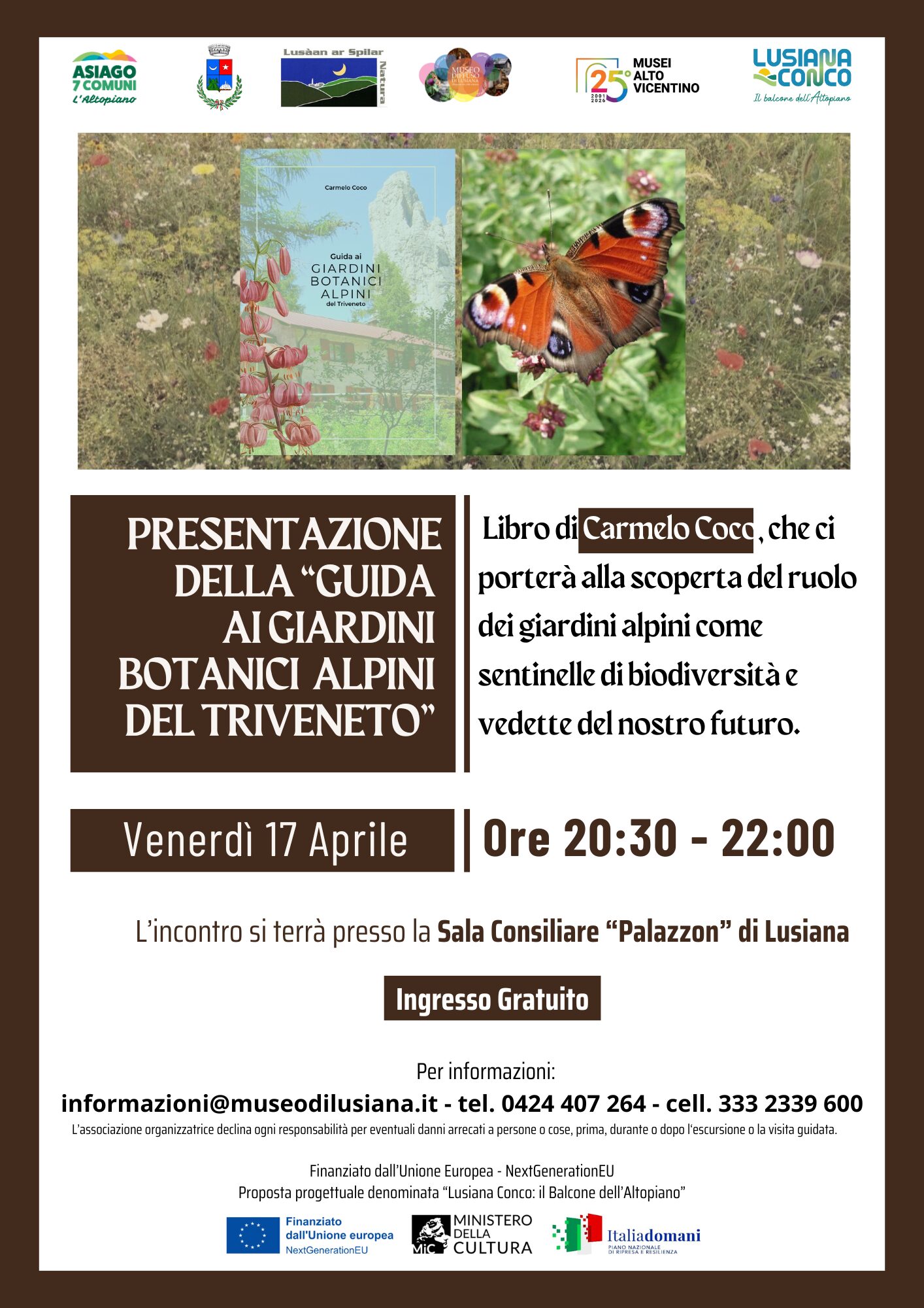 GUIDA AI GIARDINI BOTANICI ALPINI DEL TRIVENETO. Presentazione del libro di Carmelo Coco, alla scoperta del ruolo dei giardini alpini come sentinelle di biodiversità e vedette del futuro, a cura del Museo Diffuso di Lusiana